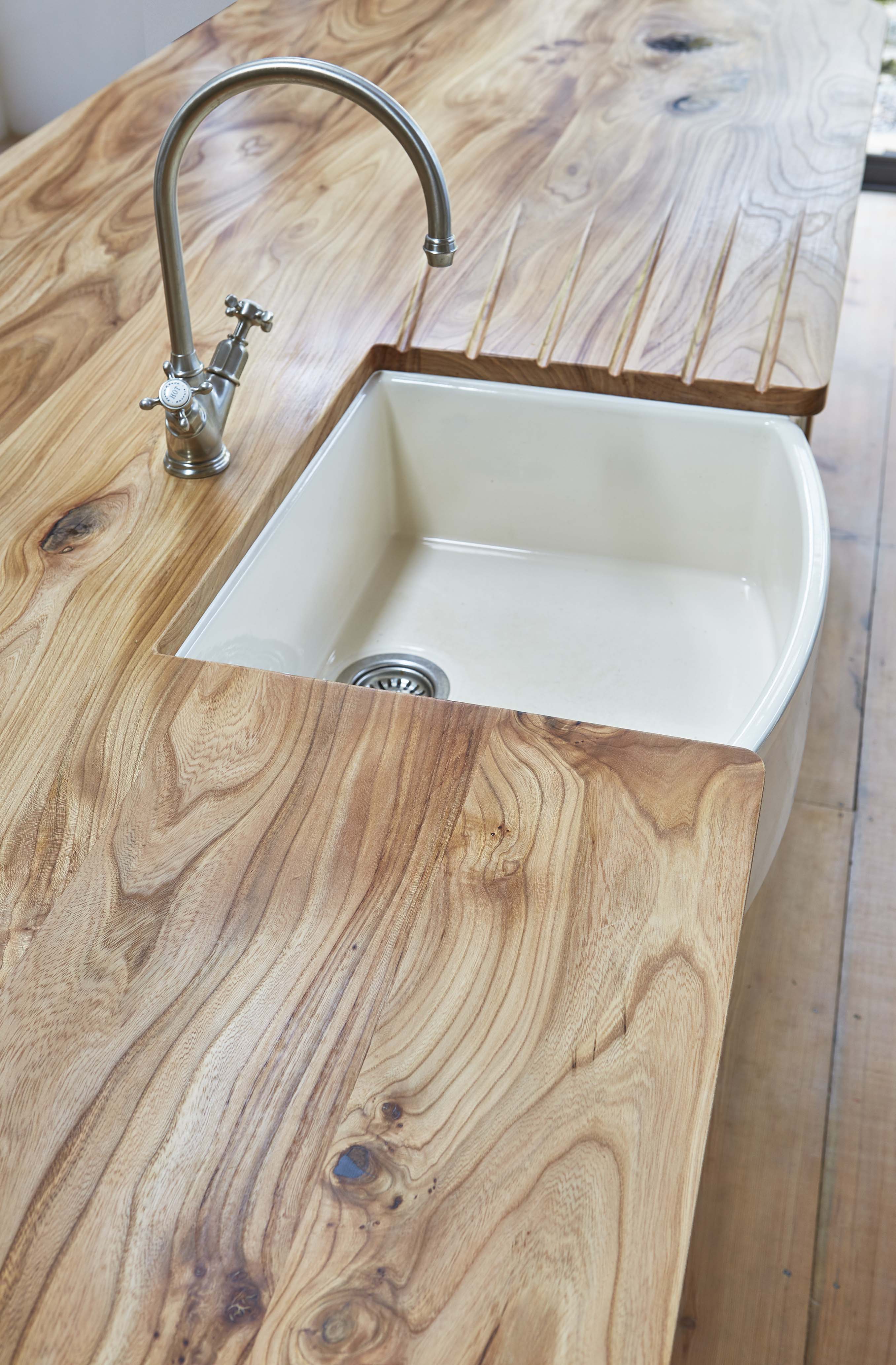 Die Eigentümer wollten die vorhandene Spüle - eine elegante Waterside 600 mit Bogenfront - beibehalten, die ihnen im Laufe der Jahre sehr ans Herz gewachsen war. Shaws-Spülbecken werden in Handarbeit aus hochbelastbarem Schamott hergestellt und sind unglaublich langlebig. Die Waterside 600 Spüle wurde aufgearbeitet, um die Patina zu entfernen, die sie durch die vielen Jahre harter Arbeit angesetzt hatte.