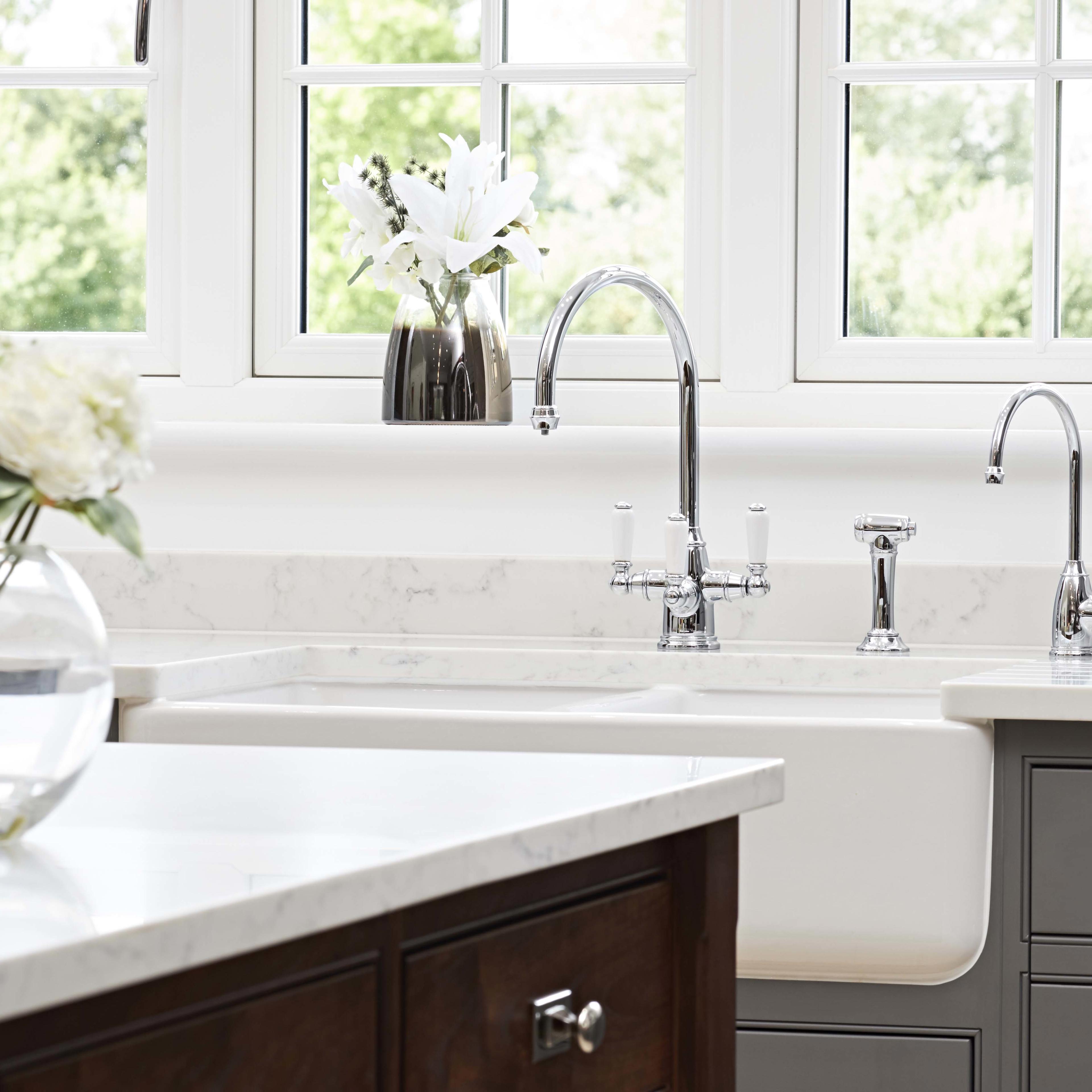 The technology behind Perrin & Rowe filtration taps derives from the world’s first three-way tap; delivering not only hot and cold water, but also filtered water through a dedicated waterway – a system that ensures the filtered water is not cross-contaminated by the standard mains hot and cold water. Our filtration taps are perfect for busy kitchens, and come in miniature models that sit alongside our standard kitchen mixers, or 3-in-1 designs.