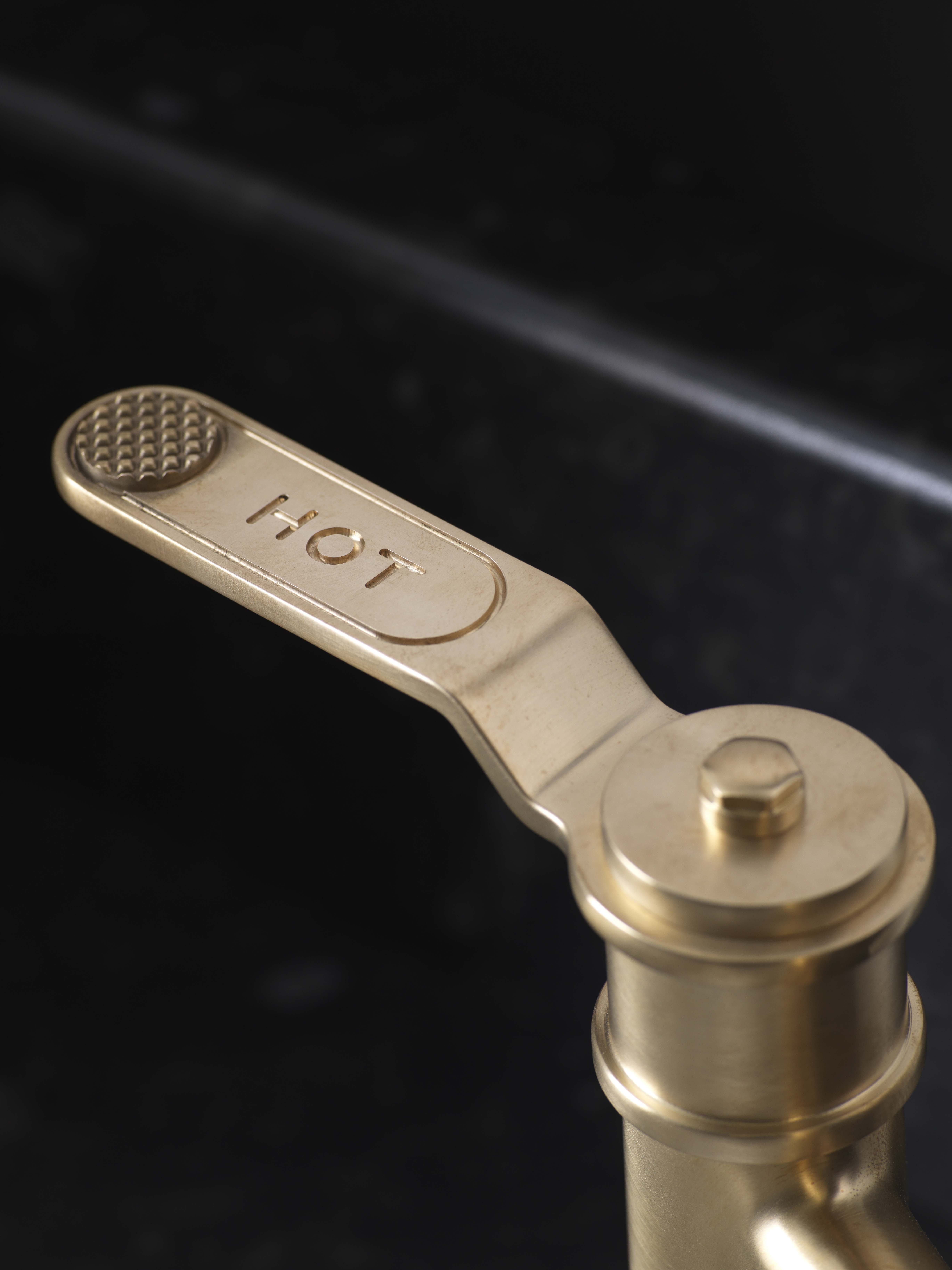 Our Gold electroplated products are made with real 24 carat gold. Gold is a soft finish which should be treated like a piece of fine jewellery, and gently cleaned with a damp, lint free cloth after use. This beautiful finish can look different in the light; sometimes bright and warm, often soft and elegant. Traditionally chosen for more classic styles of brassware, we are now seeing it in more contemporary designs where it looks beautiful. A real luxury touch for any brassware in the kitchen or bathroom.