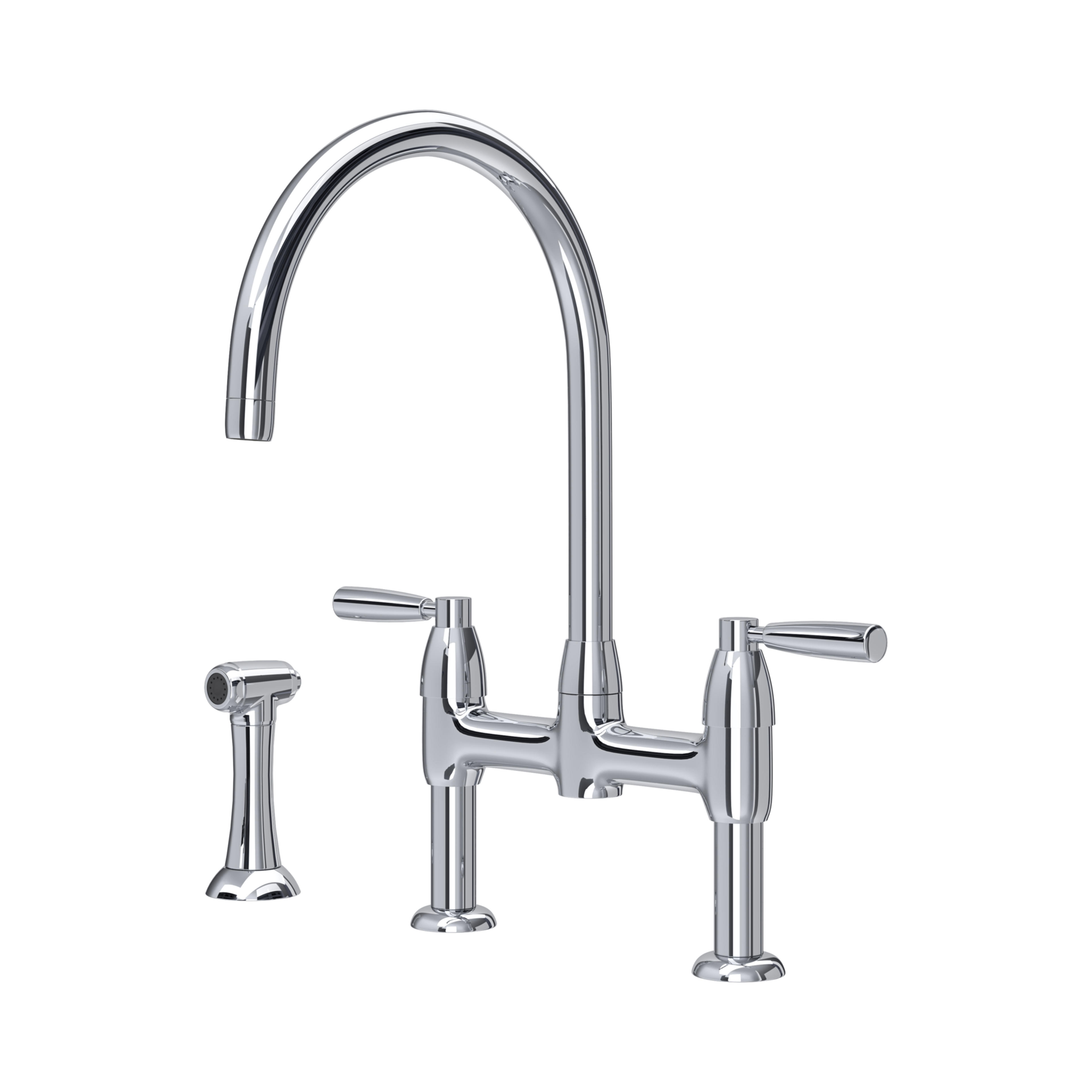 Dotato di un pratico erogatore a doccetta laterale per facilitare le operazioni di cottura, pulizia e riempimento di pentole e padelle di grandi dimensioni, questo miscelatore a ponte Langbourn si presenta come una svolta contemporanea del classico miscelatore a ponte.